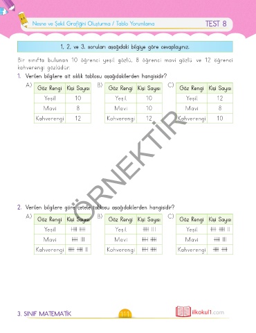 Nesne ve Şekil Grafiğini Oluşturma / Tablo Yorumlama TEST 8