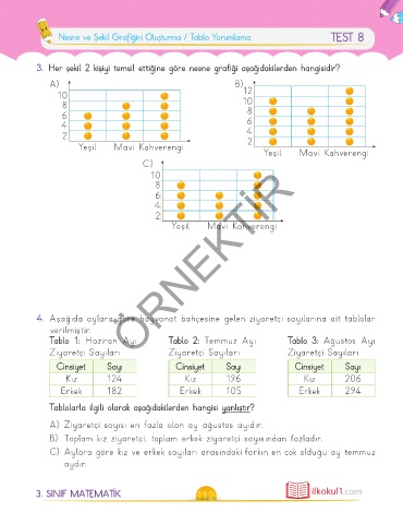 Nesne ve Şekil Grafiğini Oluşturma / Tablo Yorumlama TEST 8