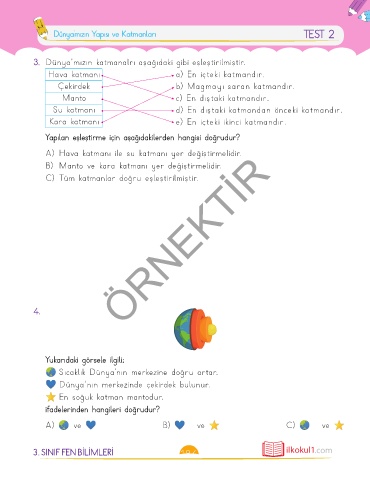 Dünya'mızın Yapısı ve Katmanları TEST 2