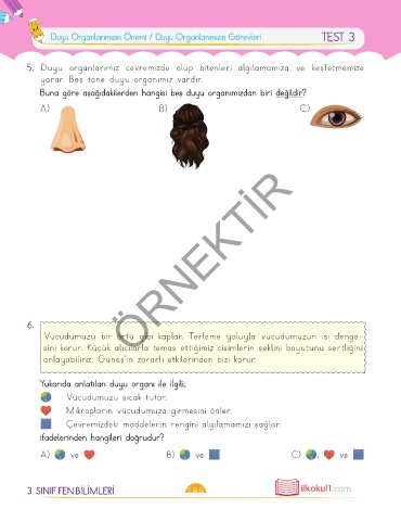 Duyu Organlarımızın Önemi / Duyu Organlarımızın Görevleri TEST 3
