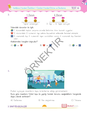 Varlıkların Hareket Özellikleri / Cisimleri Hareket Ettirme ve Durdurma TEST 4