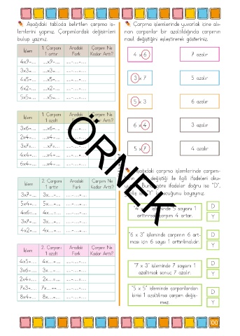 3x6=..... 3x....=.... .....-.....=..... azaltırsak sonuç 7 azalır. Y