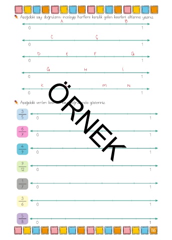 Aşağıdaki verilen kesirleri sayı doğrusunda gösteriniz.