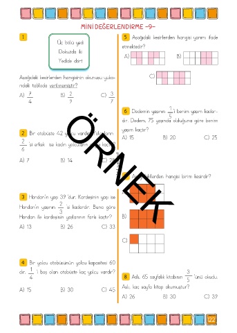 1 5 Aşağıdaki kesirlerden hangisi yarımı ifade