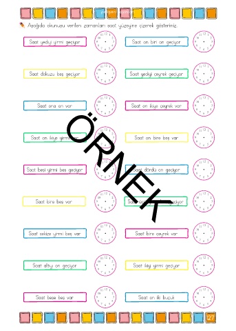 Aşağıda okunuşu verilen zamanları saat yüzeyine çizerek gösteriniz.