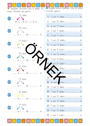 ......... dk + ......... dk = ....... s ......... dk 5. 2 saat 15 dakika = ............................... dk