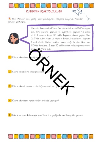 5 Kübra’nın içinde bulunduğu uçak Van’a iniş yaptığında saat kaçı gösteriyordur?