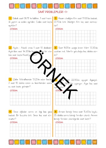 4 Sınav öğleden sonra on ikiyi beş geçe 8 Annem böreği fırına saat 15.45’te koydu.