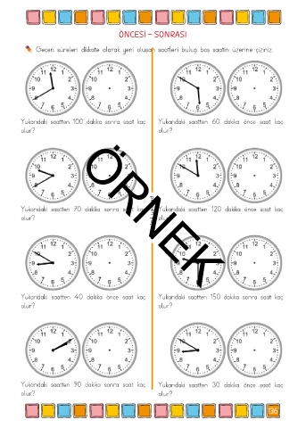 Yukarıdaki saatten 40 dakika önce saat kaç Yukarıdaki saatten 150 dakika sonra saat kaç