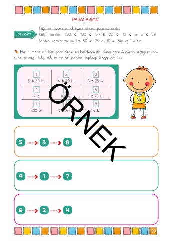 raları sırasıyla takip ederek verilen paraları toplayıp liraya çeviriniz.