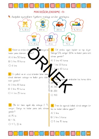 1 Robot ve araba almak istersem satıcıya ne 4 Elif araba, oyun küpleri ve top alıyor.
