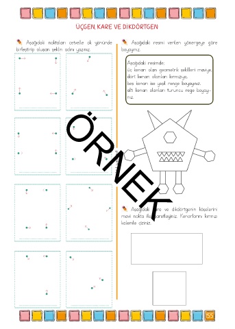 birleştirip oluşan şeklin adını yazınız. boyayınız.