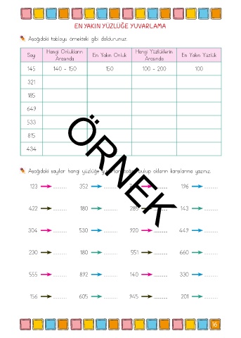 Aşağıdaki sayılar hangi yüzlüğe yuvarlanacağını bulup okların karşılarına yazınız.
