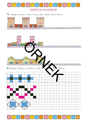 ÖRÜNTÜ VE SÜSLEMELER Aşağıdaki resimleri örüntü kuralına dikkat ederek devam ettiriniz. Aşağıdaki kaplama örüntülerini çizerek ve boyayarak devam ettiriniz. ÖRNEK 161