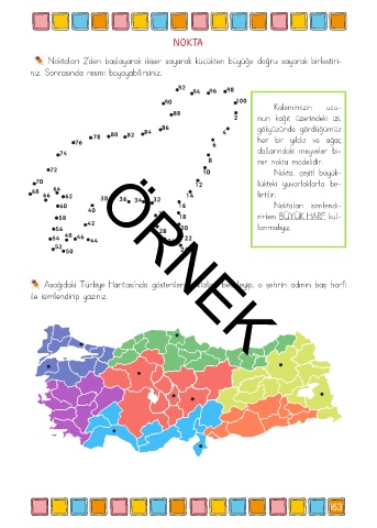 Aşağıdaki Türkiye Haritası’nda gösterilen noktaları belirleyip, o şehrin adının baş harfi