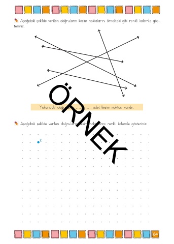Aşağıdaki şekilde verilen doğruların kesim noktalarını örnekteki gibi renkli kalemle gös-