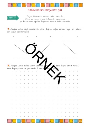 tane doğru parçası ve yeşik renkli 3 tane ışın modeli çiziniz.