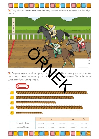 tahmin ediniz. Ardından cetvel yardımı ile gerçek uzunlukları ölçünüz. Tahminlerinizi ve