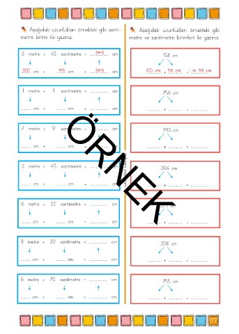Aşağıdaki uzunlukları örnekteki gibi santi- Aşağıdaki uzunlukları örnekteki gibi
