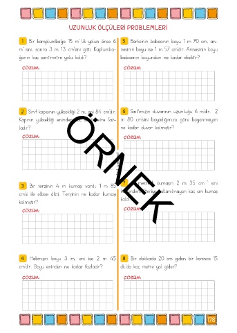 4 Halımızın boyu 3 m, eni ise 2 m 45 8 Bir dakikada 20 cm giden bir karınca 15