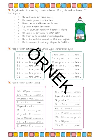 4 L - 2 L = …….......... yarım L 25 L + 30 yarım L = …….......... L