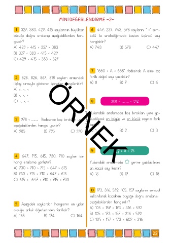 1 327, 383, 429, 415 sayılarının büyükten 6 447, 239, 743, 578 sayılarını “ >” sem-