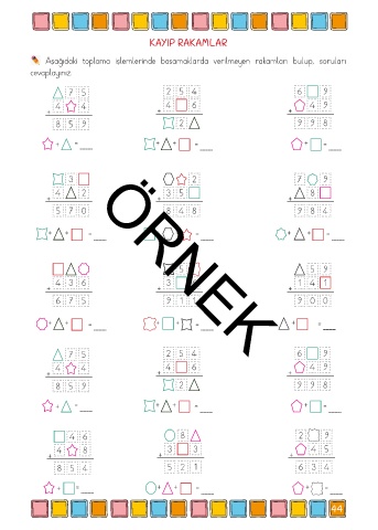 Aşağıdaki toplama işlemlerinde basamaklarda verilmeyen rakamları bulup, soruları