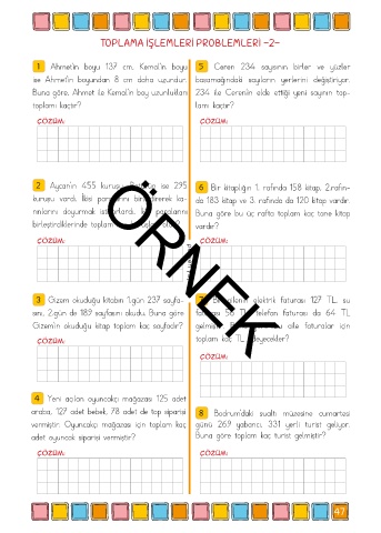TOPLAMA İŞLEMLERİ PROBLEMLERİ -2-