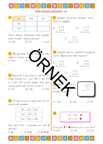 4 Mine’nin annesİ her doğru işlem için Mi- A) 524 B) 624 C) 514