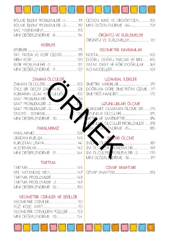 BÖLME İŞLEMİ PROBLEMLERİ -2- ..............112 MİNİ DEĞERLENDİRME -14- .........................159