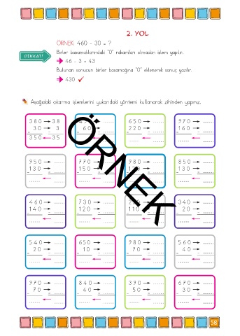 Aşağıdaki çıkarma işlemlerini yukarıdaki yöntemi kullanarak zihinden yapınız.