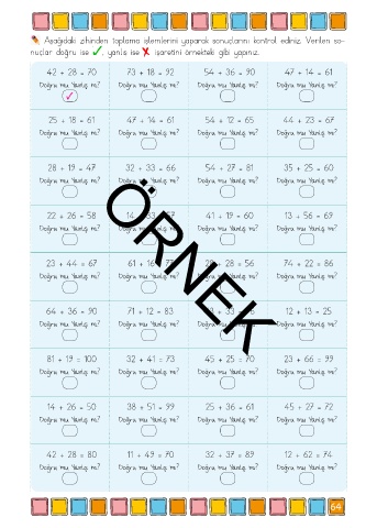 Aşağıdaki zihinden toplama işlemlerini yaparak sonuçlarını kontrol ediniz. Verilen so-