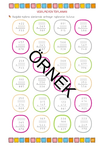 Aşağıdaki toplama işlemlerinde verilmeyen toplananları bulunuz.