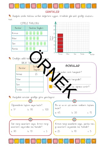 Aşağıda çetele tablosu verilen değerlere uygun, örnekteki gibi şekil grafiği oluşturu-