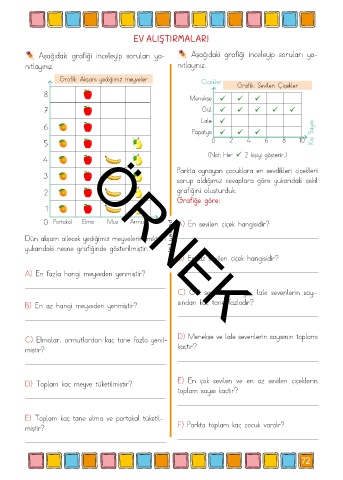 D) Toplam kaç meyve tüketilmiştir? E) En çok sevilen ve en az sevilen çiçeklerin