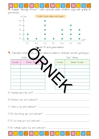 Yukarıdaki verileri çetele ve sıklık tablosuna aktarınız. Ardından soruları yanıtlayınız.