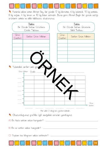 8 kg soğan, 4 kg limon ve 10 kg biber satmıştır. Buna göre Ahmet Bey’in bir günde sattığı Sayısı