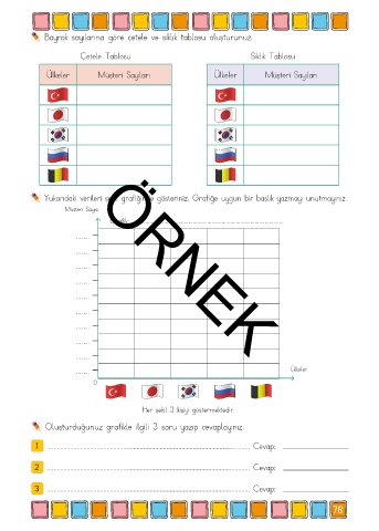 Bayrak sayılarına göre çetele ve sıklık tablosu oluşturunuz.