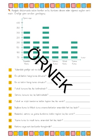 8 Basketbol, satranç ve yüzme kurslarına katılan toplam kaç kişi vardır?