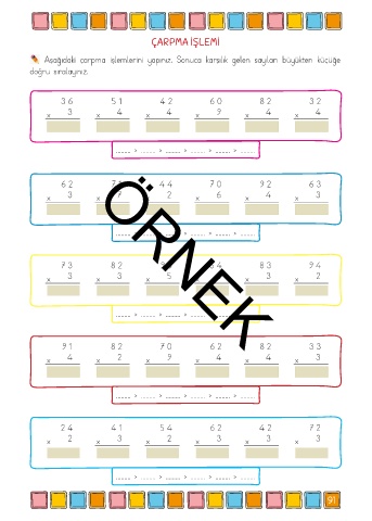 Aşağıdaki çarpma işlemlerini yapınız. Sonuca karşılık gelen sayıları büyükten küçüğe