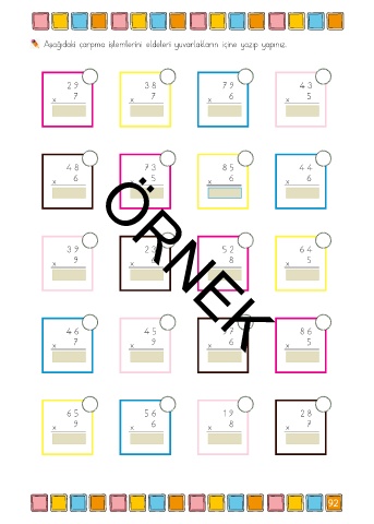 Aşağıdaki çarpma işlemlerini eldeleri yuvarlakların içine yazıp yapınız. 29 38 79 43 x 7 x 7 x 6 x 5 48 73 85 44 x 6 x 5 x 6 x 6 39 23 52 64 6 8 x x x x 9 ÖRNEK 5 46 45 97 86 x 7 x 9 x 6 x 5 65 56 19 28 x 9 x 6 x 8 x 7 92