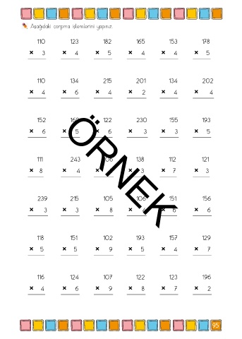 Aşağıdaki çarpma işlemlerini yapınız.