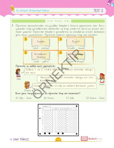 4. SINIF TÜRKÇE 16 lkokul1.com