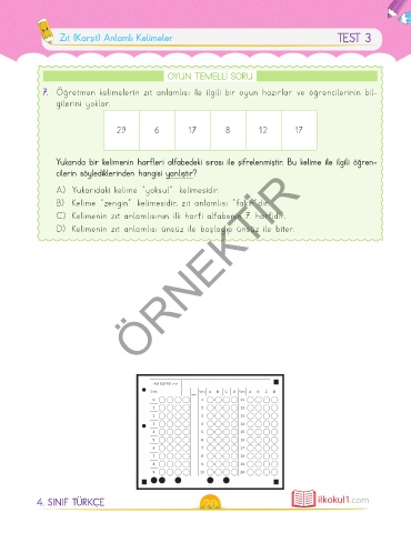 Zıt (Karşıt) Anlamlı Kelimeler TEST 3