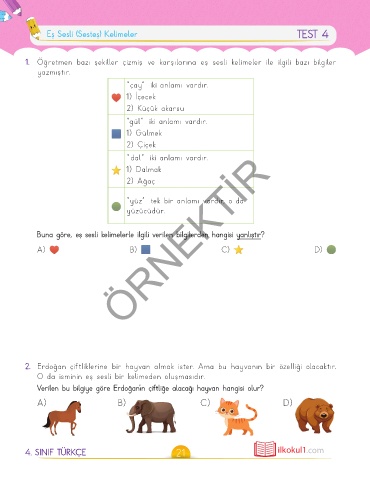 Eş Sesli (Sesteş) Kelimeler TEST 4