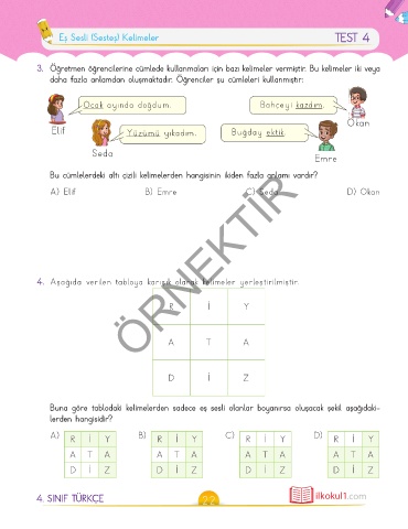 Eş Sesli (Sesteş) Kelimeler TEST 4