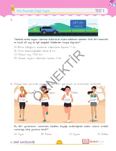 Tabelada verilen sayının rakamları kullanılarak oluşturulabilecek rakamları farklı dört basamaklı