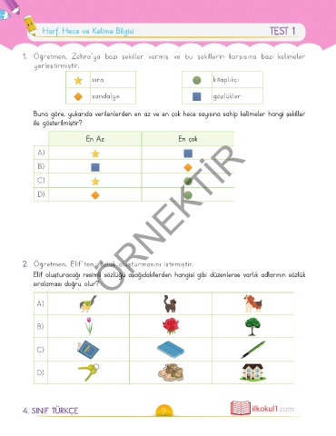 Harf, Hece ve Kelime Bilgisi i TEST 1