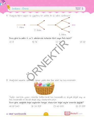 2. Aşağıdaki sepette, üzerinde rakam yazılı olan beş adet top bulunmaktadır.