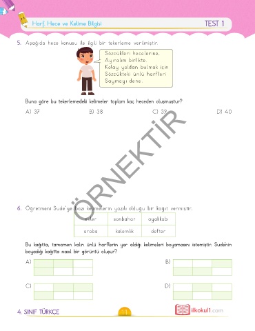 Harf, Hece ve Kelime Bilgisi TEST 1